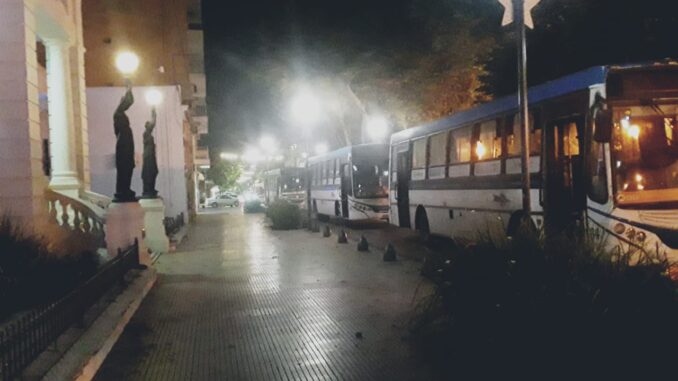 En ese marco este martes continuaba la concentración de los trabajadores de la firma en la Plaza Colón, precisamente en la glorieta que está justo en frente a la entrada del Palacio Municipal. En tanto tres micros están estacionados en esa cuadra de la calle San Martín entre Mariano Moreno y Colón interrumpiendo el tránsito.