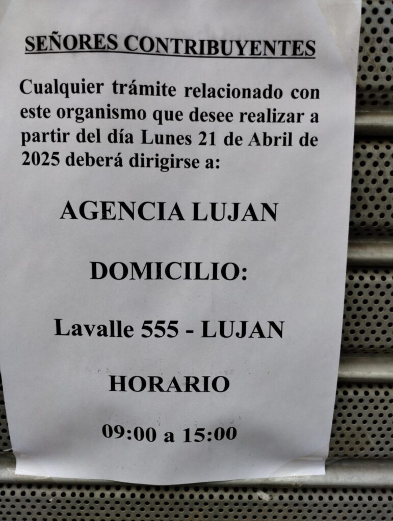 La medida comenzó a regir este 21 de abril y los rodriguenses nuevamente para hacer trámites en el organismo tributario deberán concurrir a la sede de Luján. Lamentablemente es un retroceso para aquella ciudad y otra de las señales del ajuste que vive el Estado Nacional.