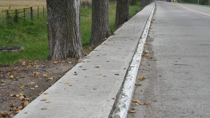 El sendero cuenta con 1,20 metros de ancho y se extiende a lo largo de 400 metros sobre la calle 25 de Mayo, en el ingreso a Jáuregui, donde recientemente se inauguró una importante obra de repavimentación.