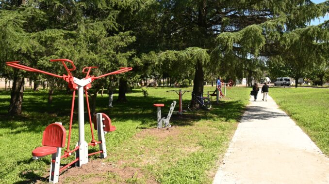 Asimismo, se instalarán los siguientes juegos infantiles: mangrullo de dos torres, sube y baja doble y pórtico cuádruple con butacón integrador. Actualmente, se colocaron dos pérgolas metálicas con mesas y bancos de hormigón.