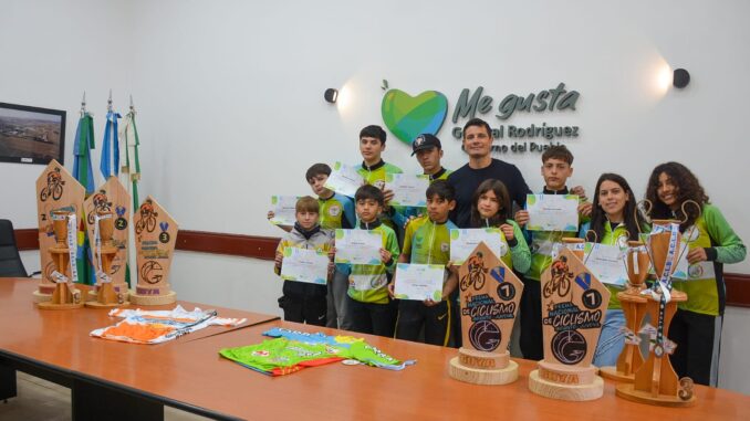El Intendente Mauro García recibió a integrantes de la Escuela de Ciclismo Infanto-Juvenil “Los Peques” de General Rodríguez para hacer entrega de un reconocimiento por sus destacados resultados en los certámenes nacionales.