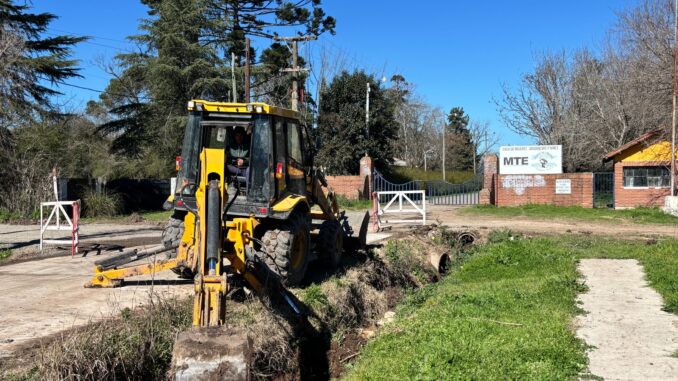 Los trabajos incluyen tareas de nivelación, rectificación y profundización de cunetas, junto con el recambio de cañerías en accesos domiciliarios y cruces de calle, utilizando conductos de hormigón armado.