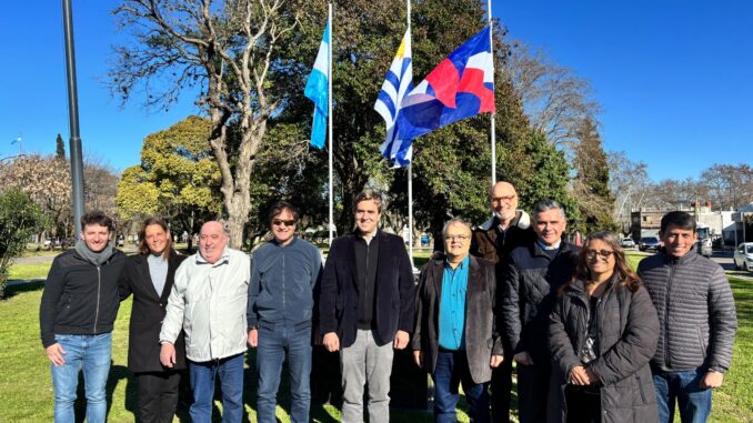 El acto comenzó con el izamiento de las banderas de Argentina, Uruguay y la Bandera de José Gervasio Artigas, prócer de la independencia uruguaya y referente de la integración de los pueblos del Río de la Plata.