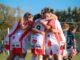 San Cayetano, llegó al 100% de iluminación (24 artefactos): Sor Josefina entre Pascual Simone y Enrique Udaondo.