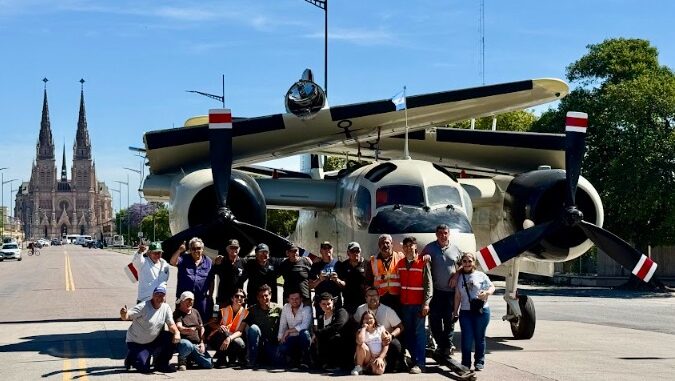 La emblemática aeronave, que realizaba vuelos de búsqueda y reconocimiento antisubmarino, fue restaurada por el Centro de Veteranos de Guerra de Luján con el acompañamiento del Municipio y colaboradores, con el fin de honrar a todos los veteranos de guerra que han dado su vida y a los que volvieron y reforzar el compromiso de Luján con la preservación de su patrimonio Histórico.