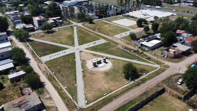 En paralelo, se avanza en la construcción de una plaza totalmente renovada, que contará con juegos recreativos, un playón multideportes y un anfiteatro, generando un espacio de encuentro, recreación y disfrute para toda la comunidad.