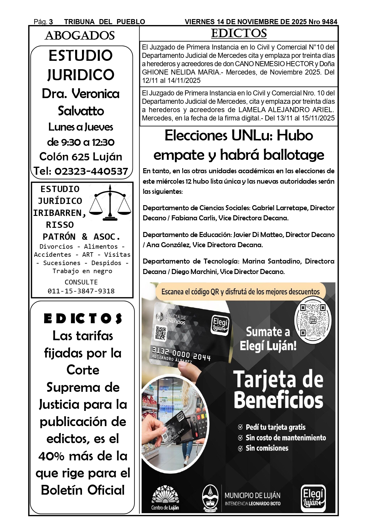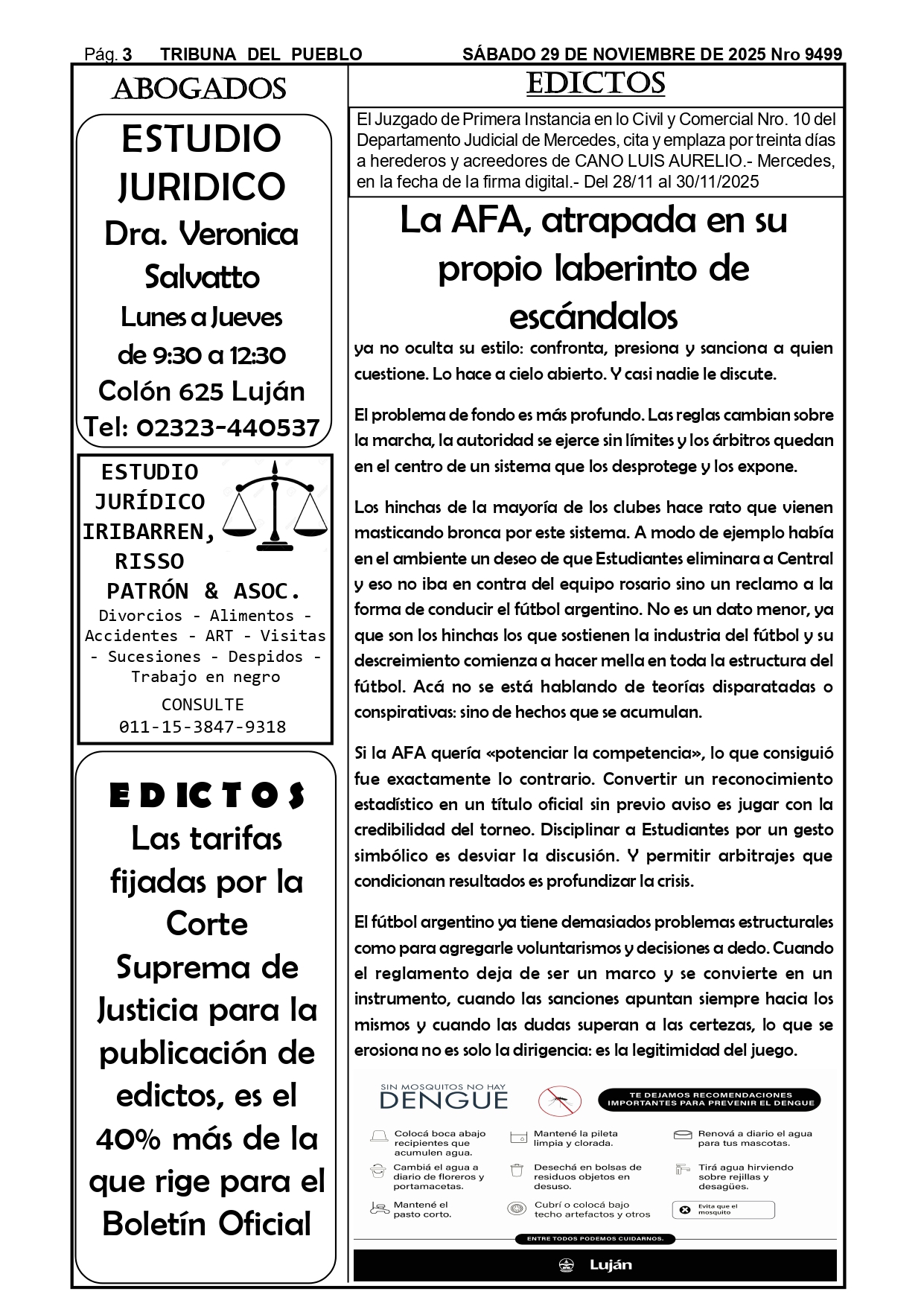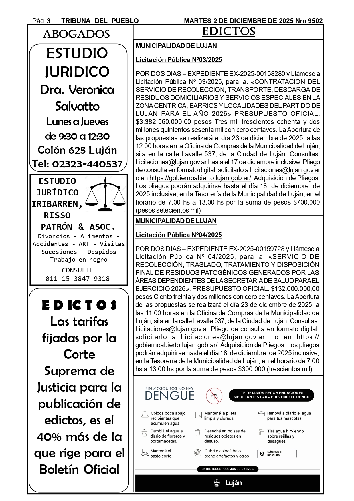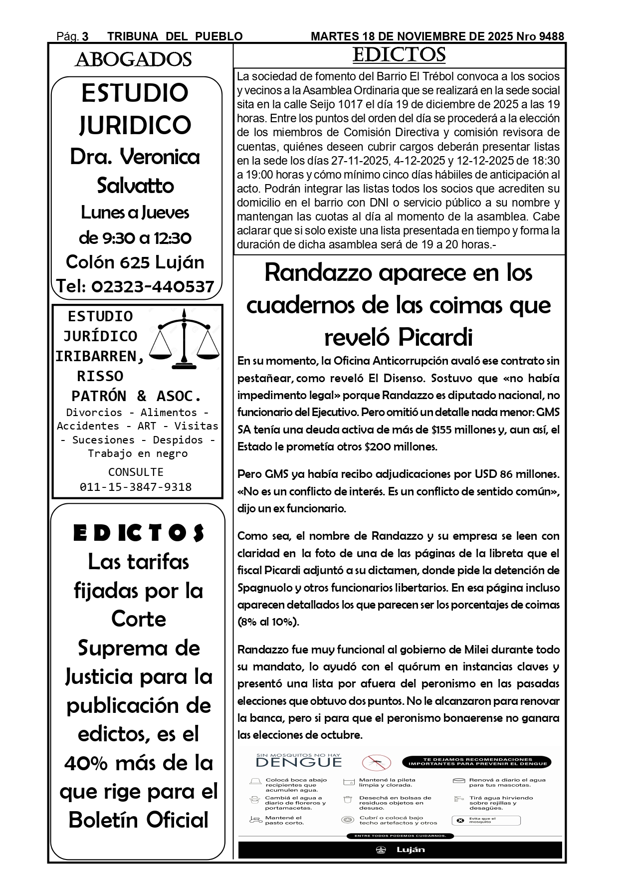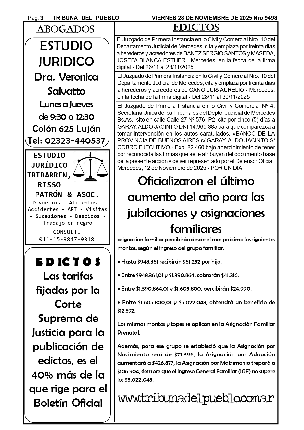 Para el retiro de edictos o recepción del mismo llamar al 02323-15 634178 o mandar mail a tribunadelpueblo@hotmail.com.ar Muchas gracias.