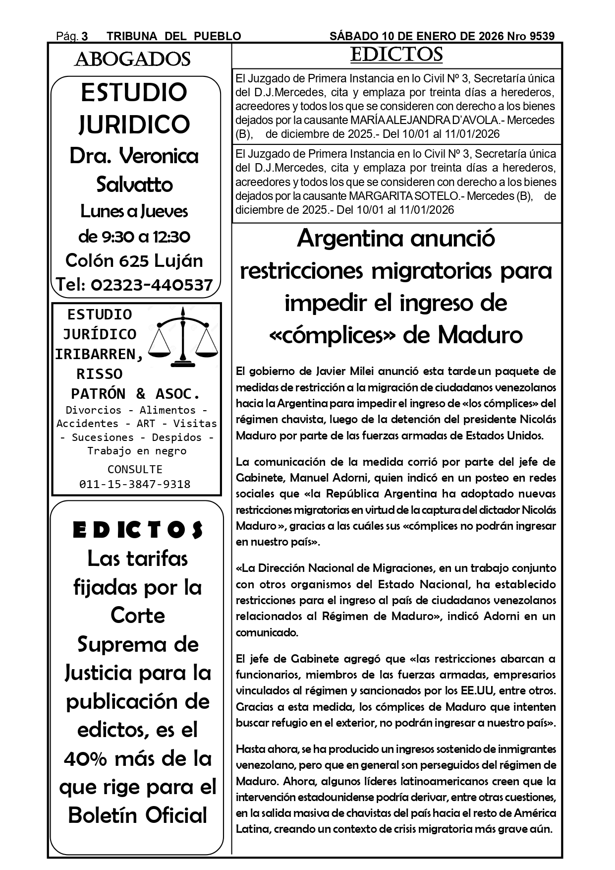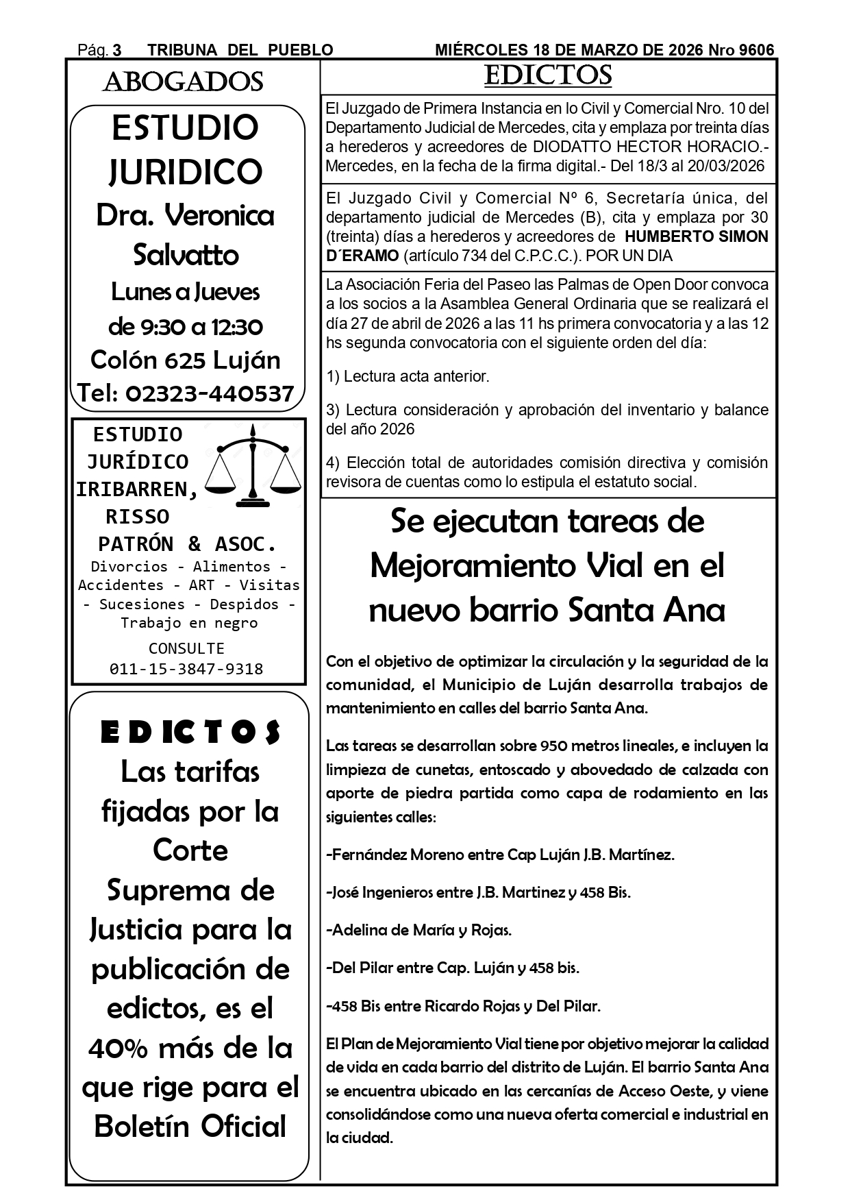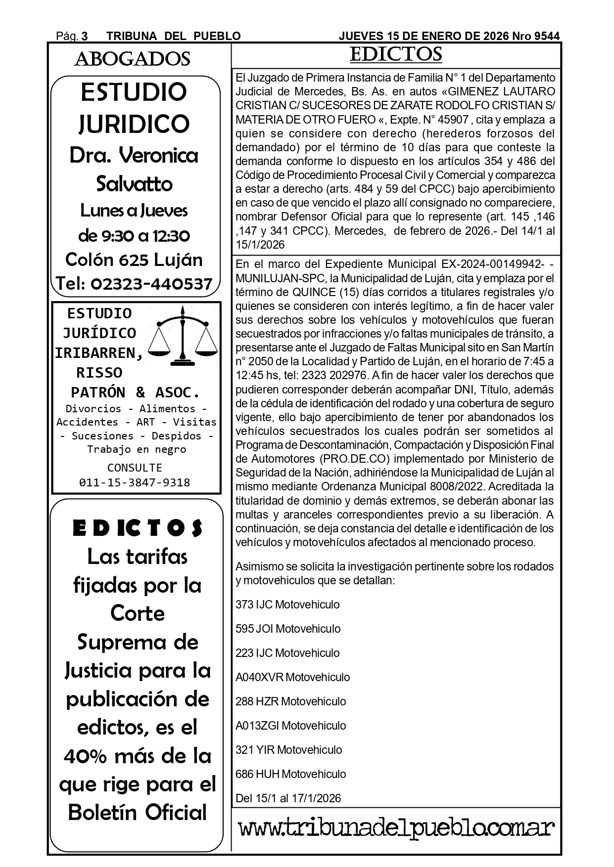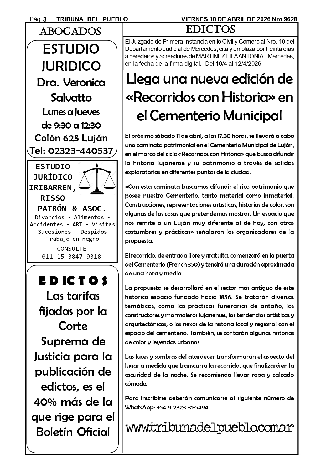 Edictos Para el retiro de edictos o recepción del mismo enviar Whatsapp al 02323-15 634178 o mandar mail a tribunadelpueblo@hotmail.com.ar. Muchas gracias.