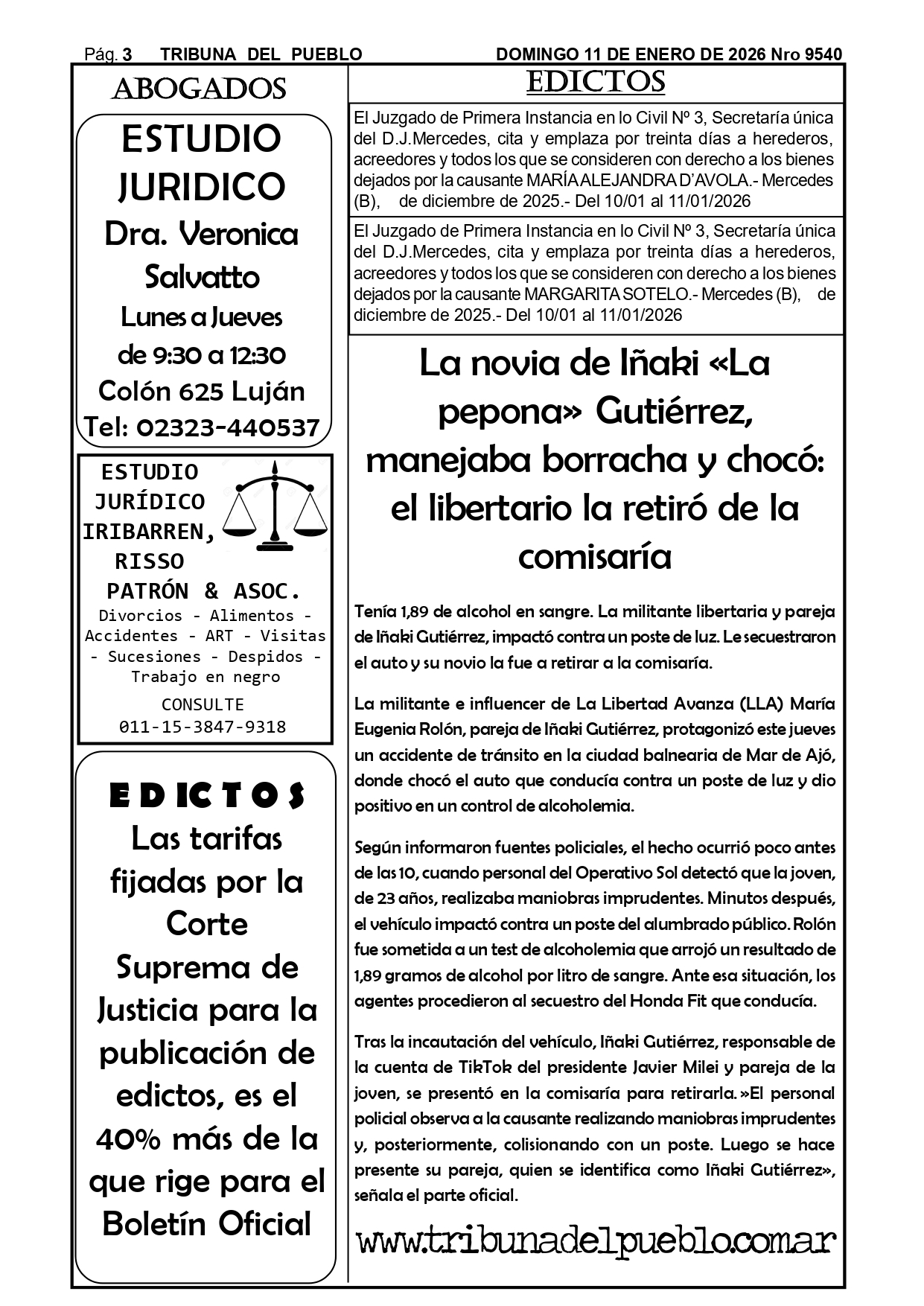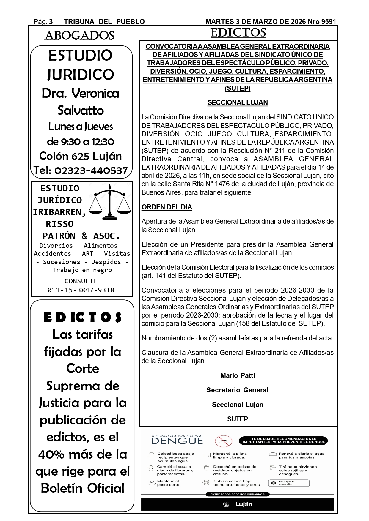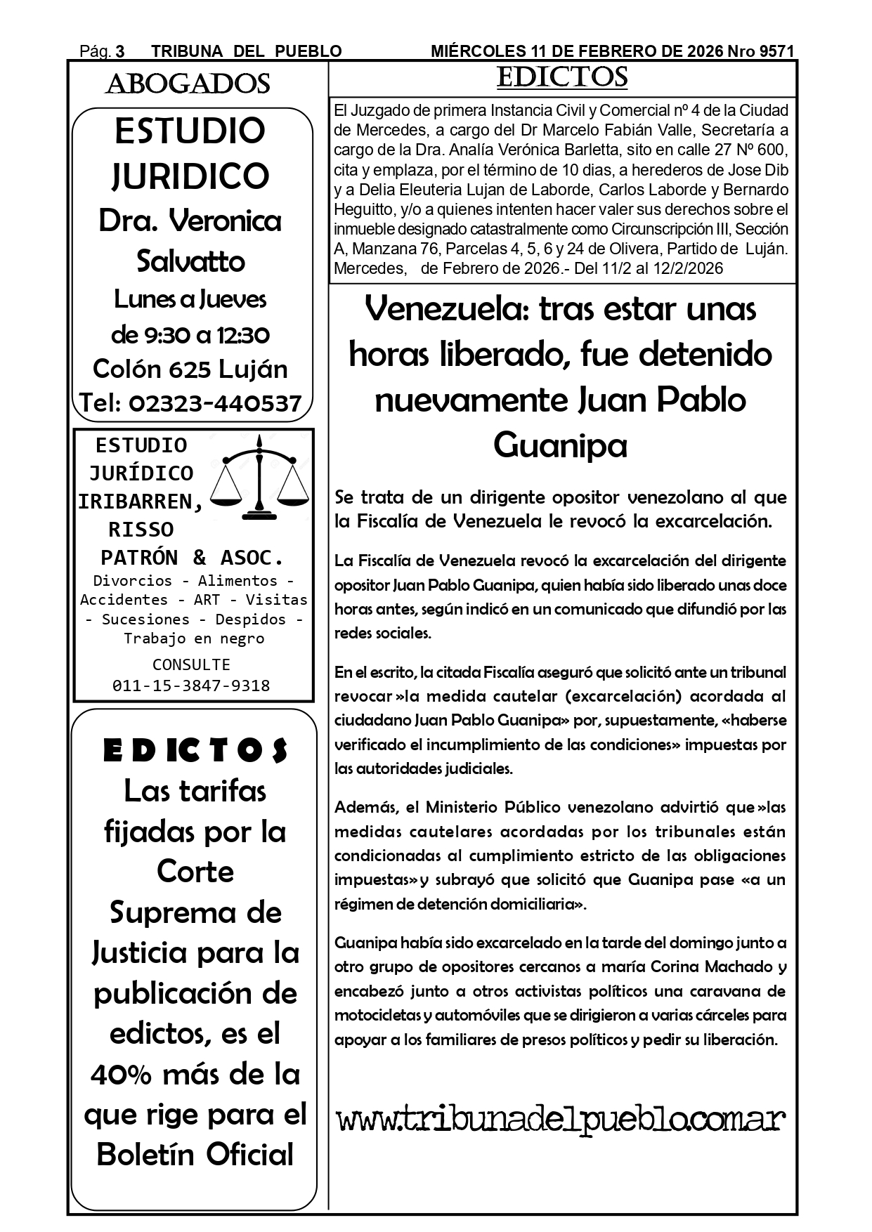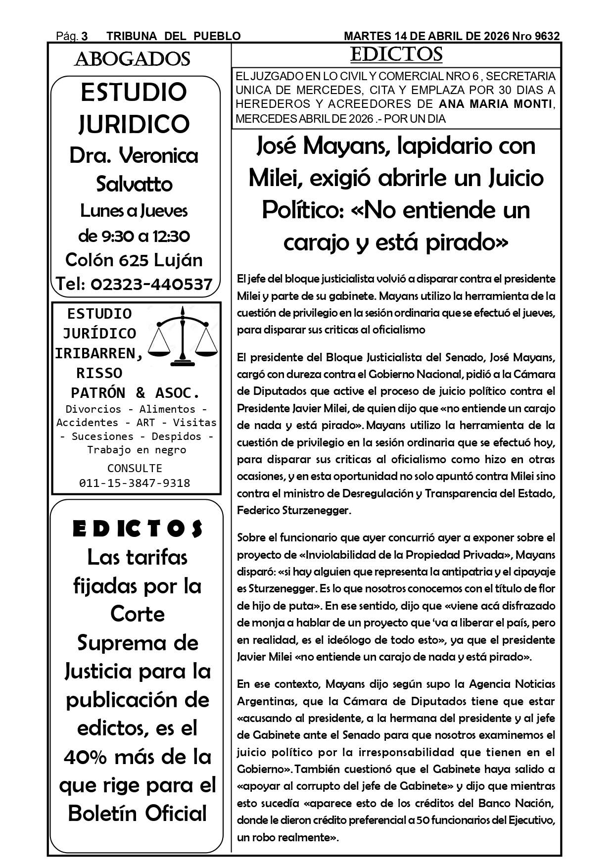 Edictos Para el retiro de edictos o recepción del mismo enviar Whatsapp al 02323-15 634178 o mandar mail a tribunadelpueblo@hotmail.com.ar. Muchas gracias.