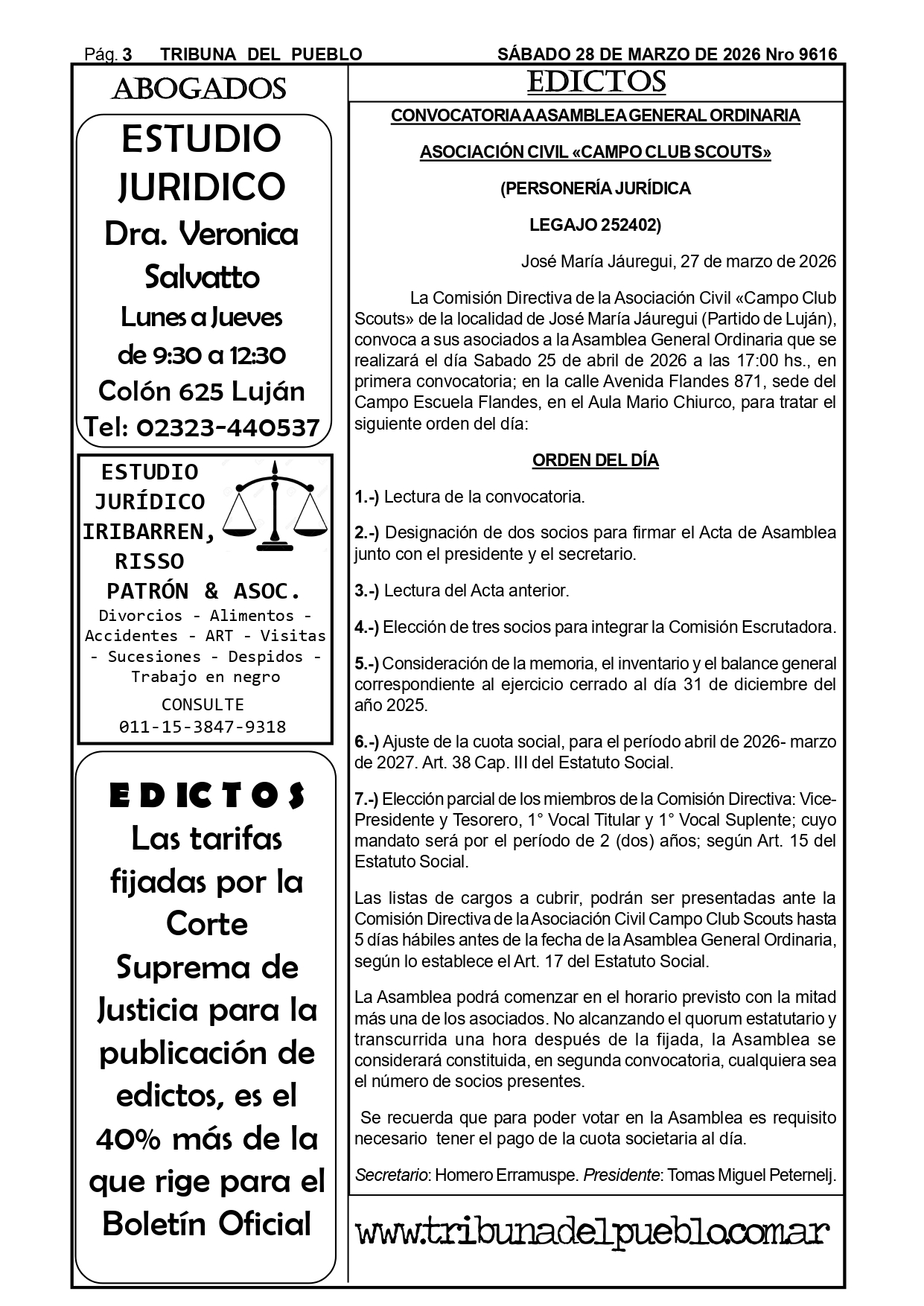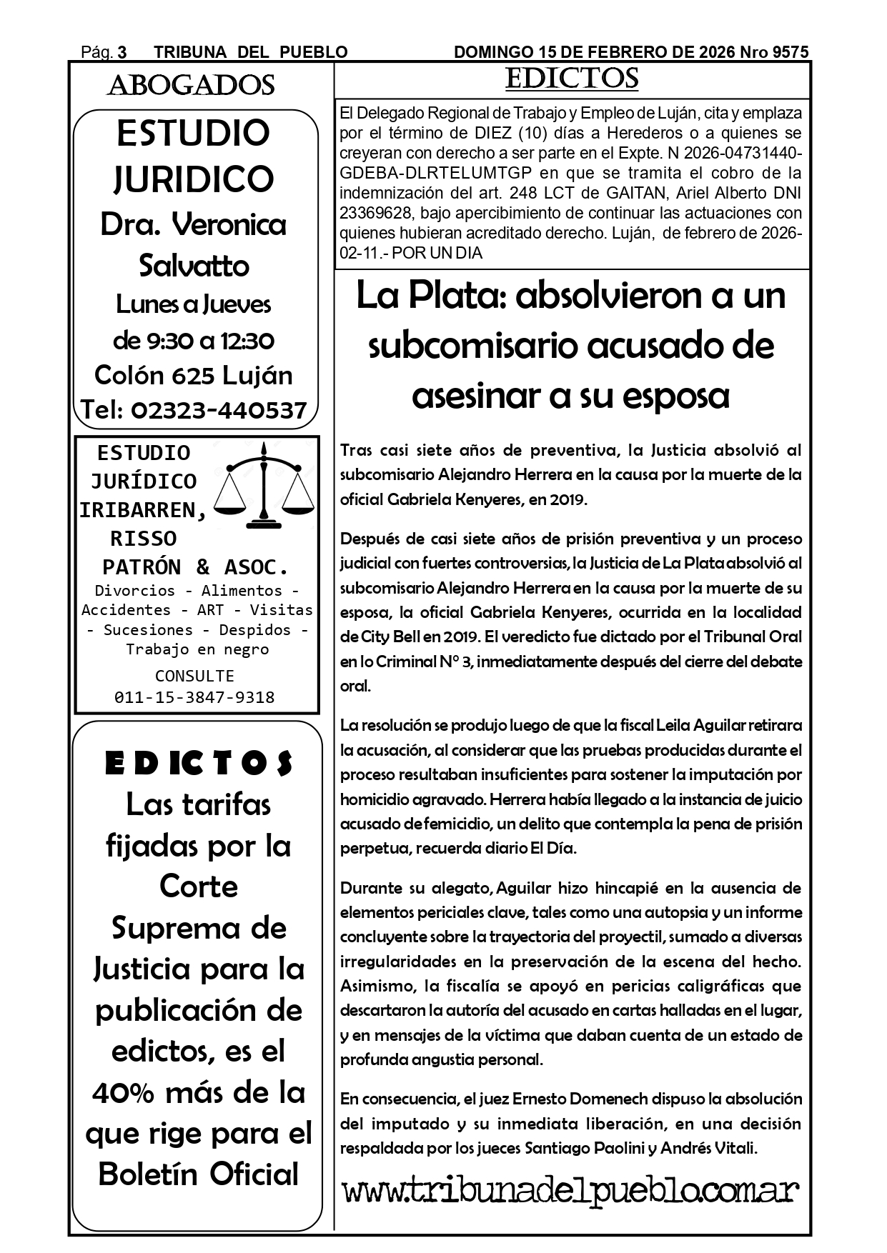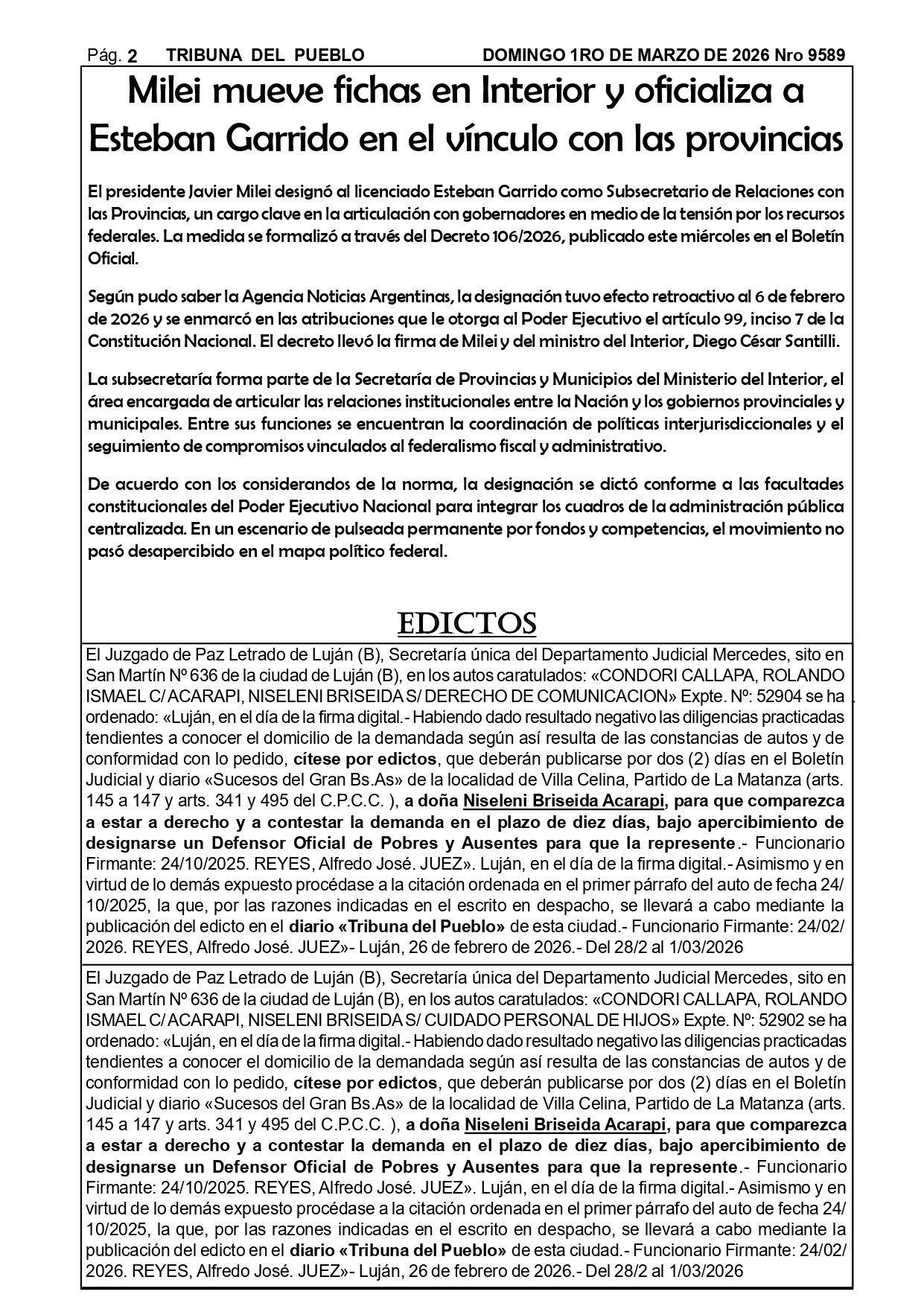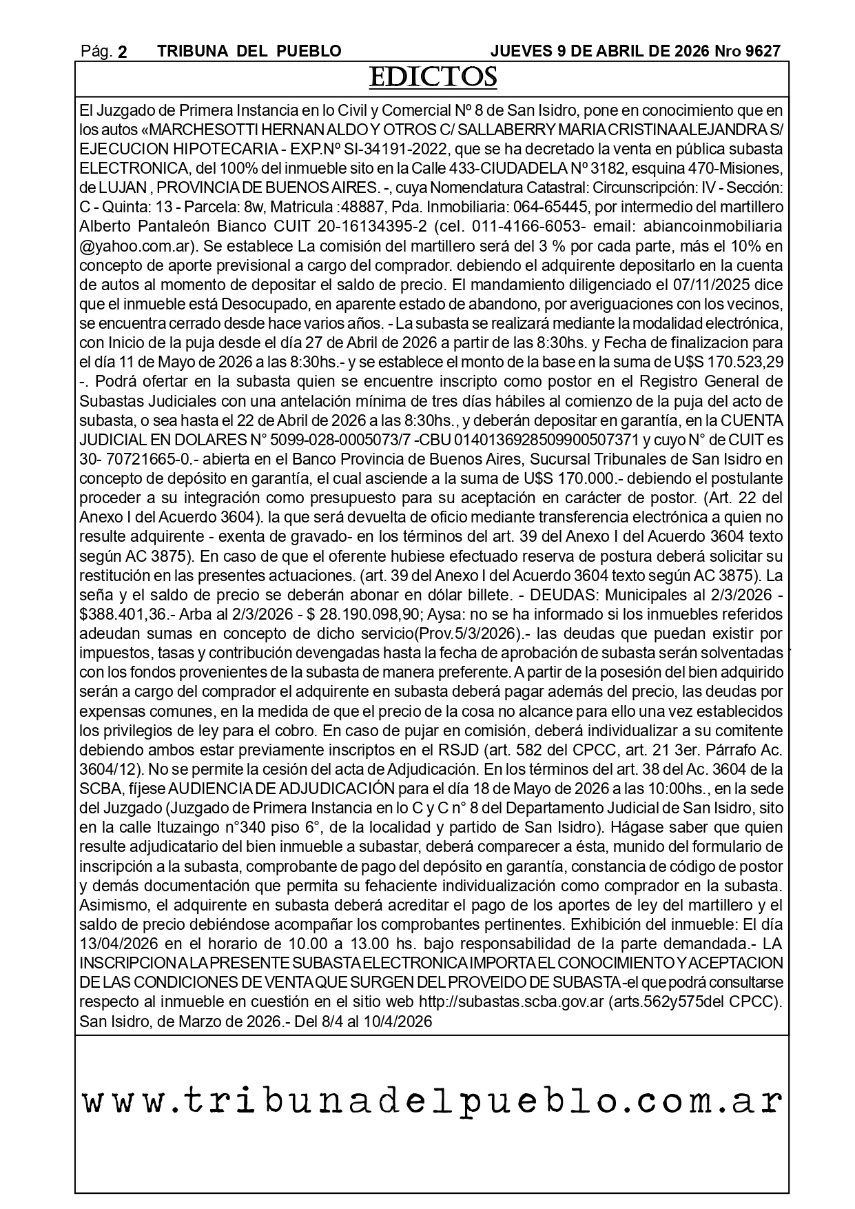 Edictos Para el retiro de edictos o recepción del mismo enviar Whatsapp al 02323-15 634178 o mandar mail a tribunadelpueblo@hotmail.com.ar. Muchas gracias.